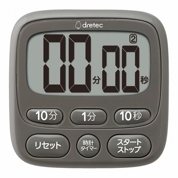 ドリテック(dretec) 抗菌時計付大画面タイマー ダークグレー 199分50秒計 T612DG(BTID802)