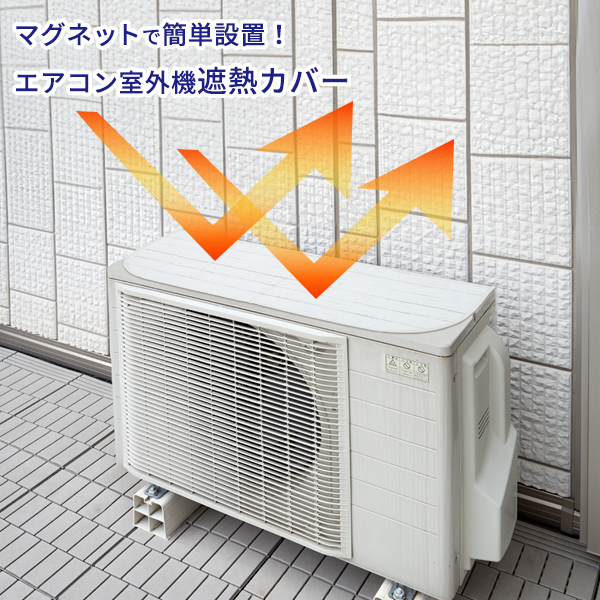 マグネット式で簡単に着脱できる室外機用遮熱カバー。