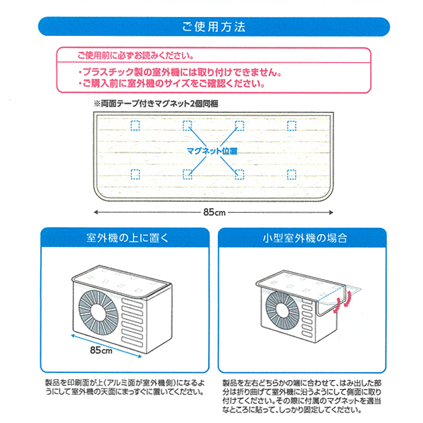 クーラー 暖房 冷房 室外機 天板 断熱 シート マグネット エコ 省エネ 節約 マット カバー 耐熱性 放熱効果 簡単設置 反射 電気代 太陽光カット 幅85 奥行35 厚さ0.3 センチ cm 省エネルギー 電気代 23度下げる 五層構造 断熱効果 室外機保護 ナチュラル air conditioner The outdoor unit cover cooler heating cooling protect Thermal barrier insulation energy saving エアコン性能 おすすめ 冷暖房能力 アップ 省エネ性能 magnet top board heat conduction 4900309029275