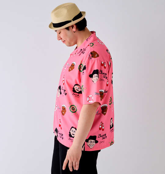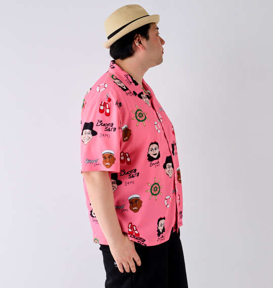 大きいサイズ メンズ HUMAROUS Imagine 半袖 アロハ シャツ ピンク 1267-4200-1 3L 4L 5L 6L