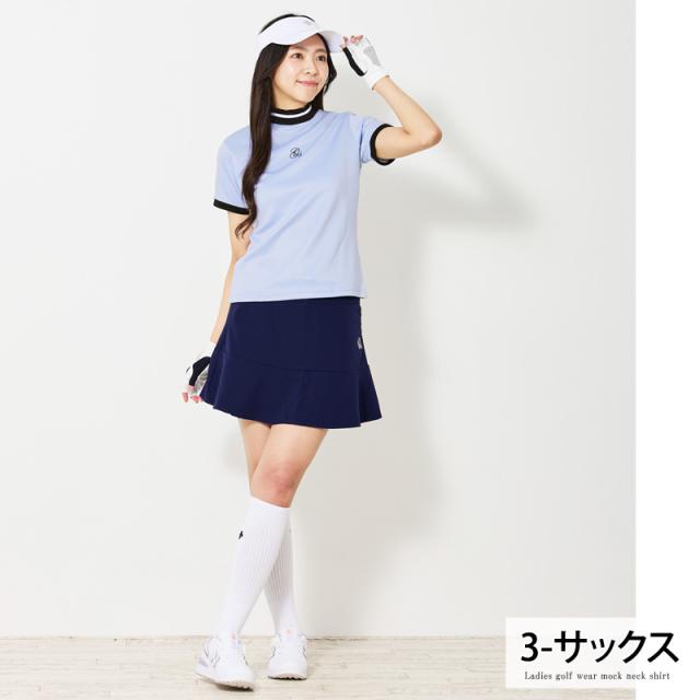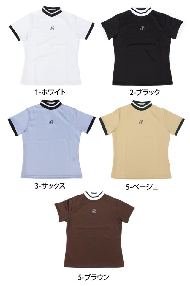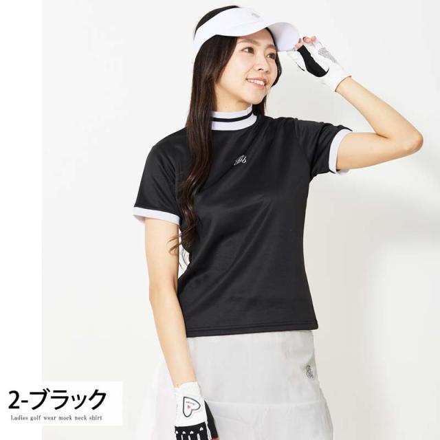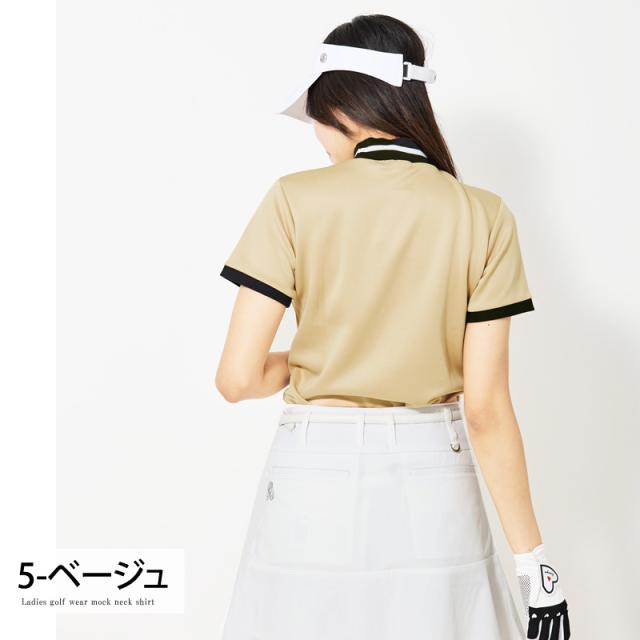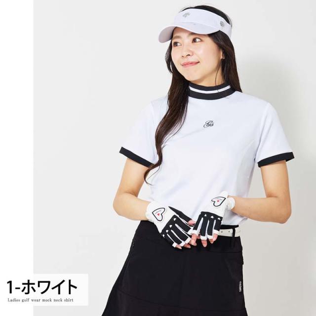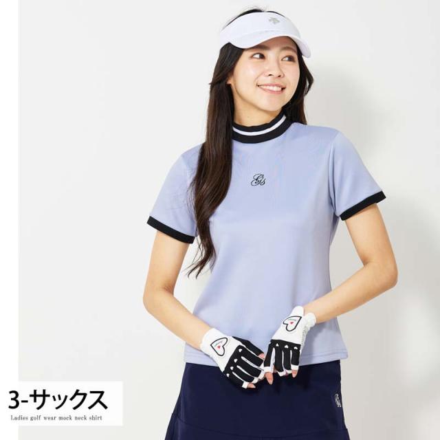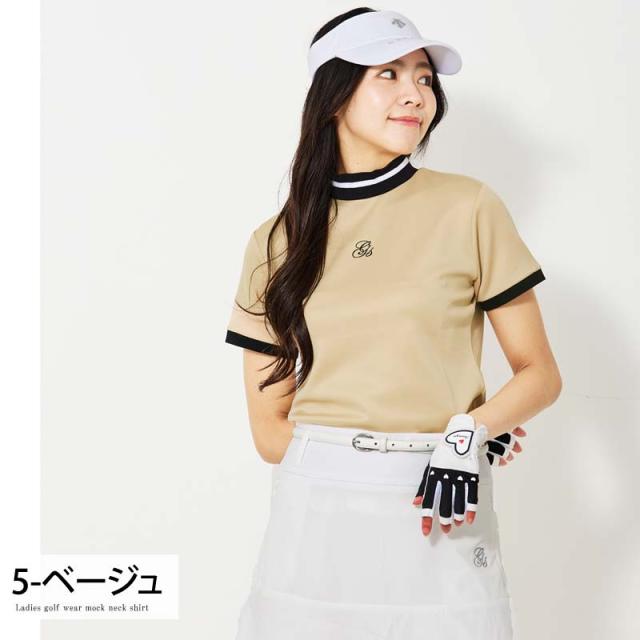 新作 ゴルフウェア レディース モックネック gs GOLF ポロシャツ ハイネック 半袖 ストレッチ トップス ロゴ刺繍 ライン 無地 おしゃれ かわいい 韓国系 春夏 送料無料 ゆうパケ