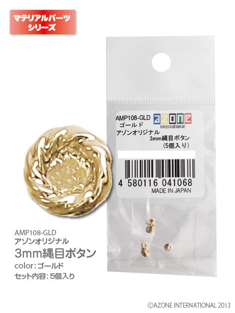 アゾン アゾンオリジナル3mm縄目ボタン ゴールド【AMP108-GLD】ドール用 返品種別B