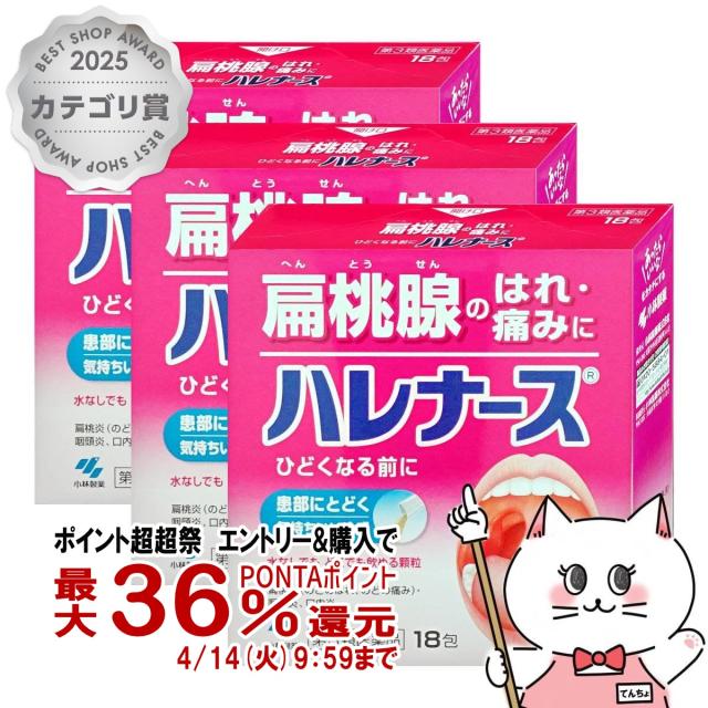 【超超祭 最大36%還元】【第3類医薬品】[セット]ハレナース 18包×3個[のど/せき止め][小林製薬株式会社][送料無料](6044020-set2)