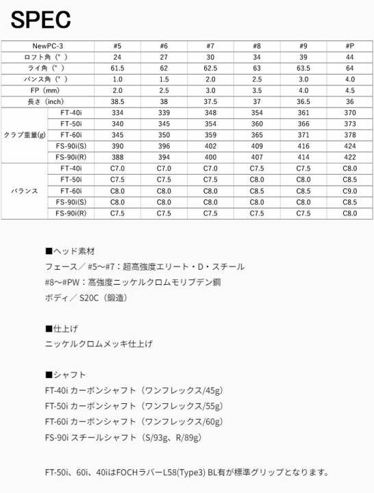 【2024モデル】フォーティーン NEW PC-3 アイアン 単品(#5、#6) シャフト:FT-60i カーボン FOURTEEN NEW PC-3 20p