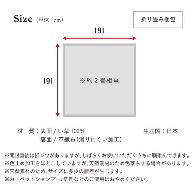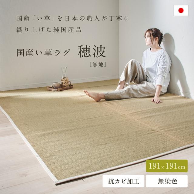 国産 い草ラグ 穂波 191x191cm 無地 ラグ マット 敷物 い草 ござ マット フロアマット 正方形 リビング 寝室 子供部屋 リラックス 抗カビ加工 滑りにくい加工 抗菌 消臭 吸音 湿度調整 空気清浄 ナチュラル おしゃれ