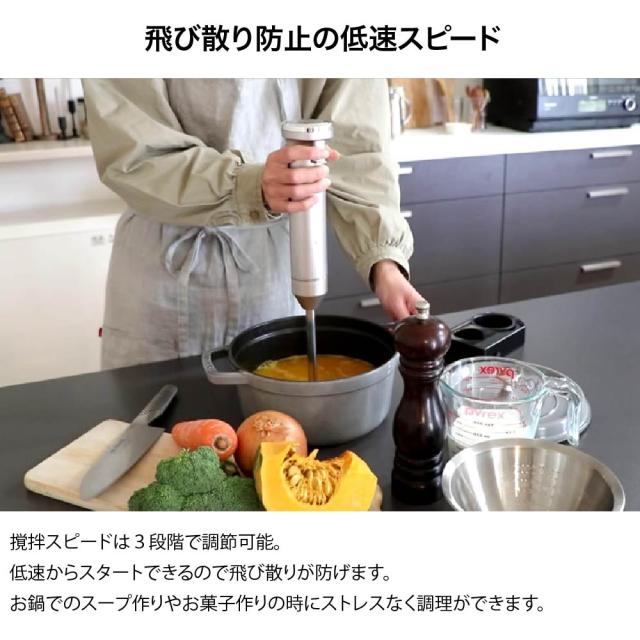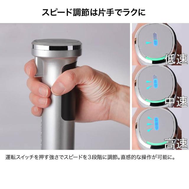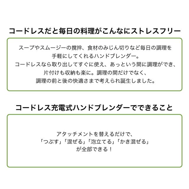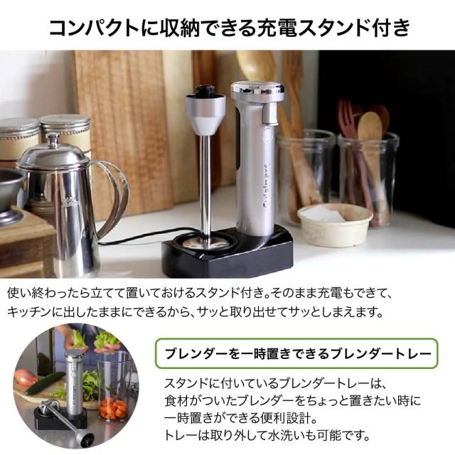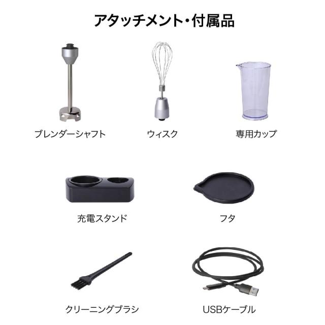 ■セット内容:本体、ブレンダー、ウィスク、専用カップ、フタ、充電スタンド、USBケーブル(Type-C)、クリーニングブラシ