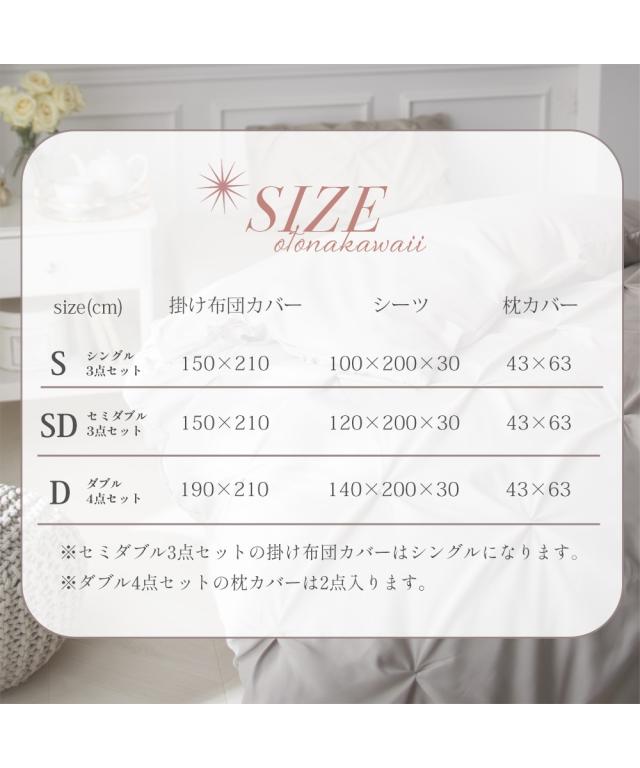 ※セミダブル3点セットの掛け布団カバーはシングルサイズになります。