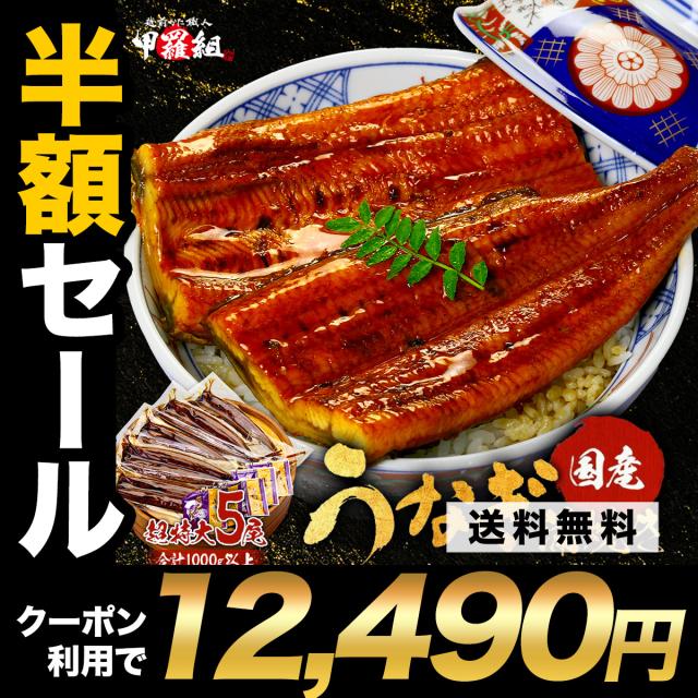 【半額クーポンで⇒12,490円!】 国産 うなぎ 鰻 ウナギ 南九州のブランドうなぎ蒲焼き 超特大サイズ220g前後×5尾 ※タレ&山椒付き 化粧箱 ギフト 贈答 贈り物 誕生日
