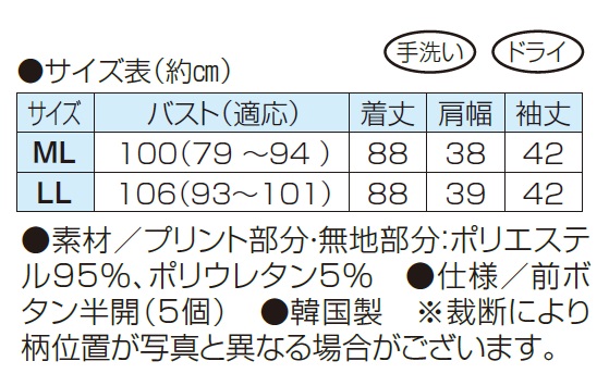 ●素材/プリント部分・無地部分:ポリエステル95%、ポリウレタン5%