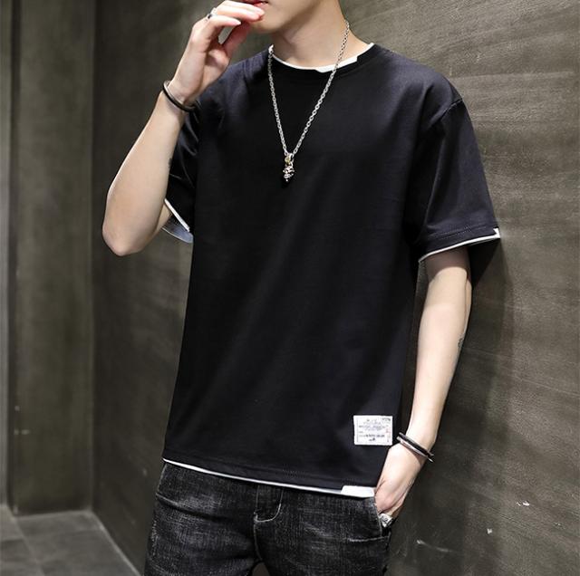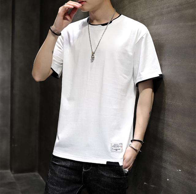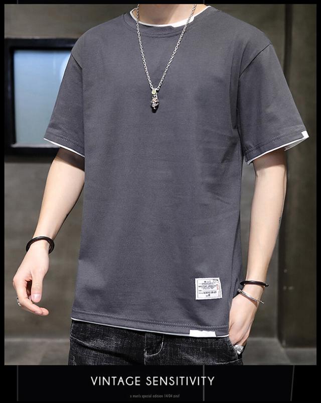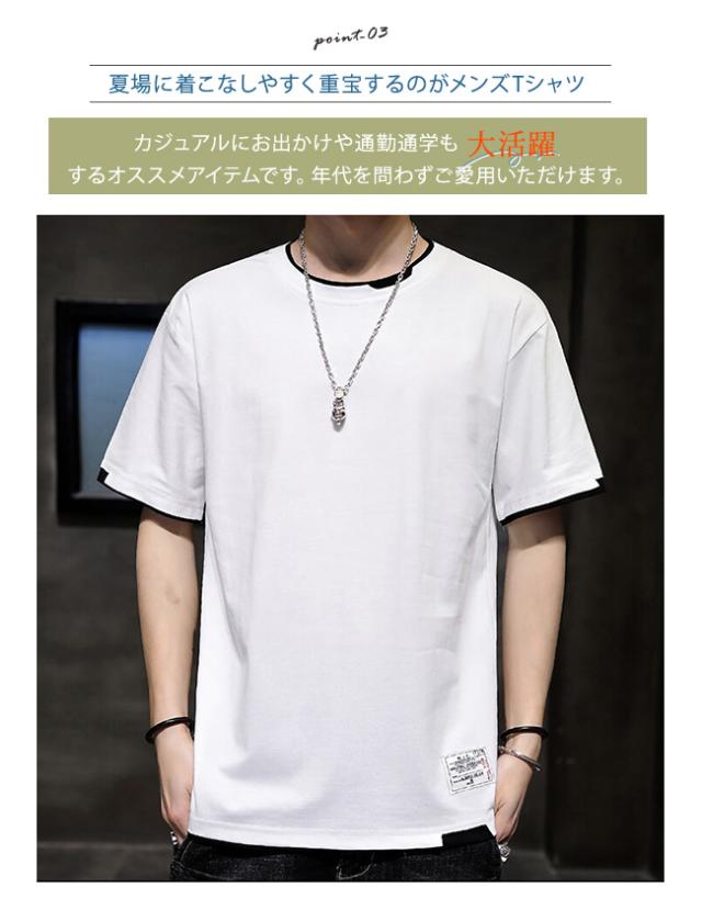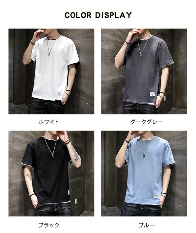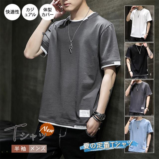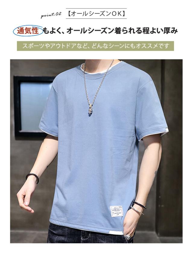 夏新作 tシャツ メンズ 半袖 Tシャツ 夏 おしゃれ 薄手 無地 重ね着風 綿100% シンプル カジュアル 大きいサイズ ゆったり