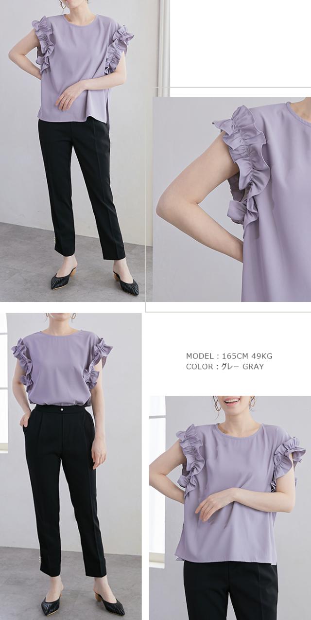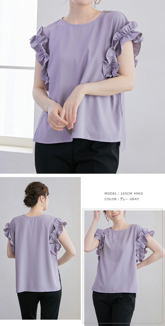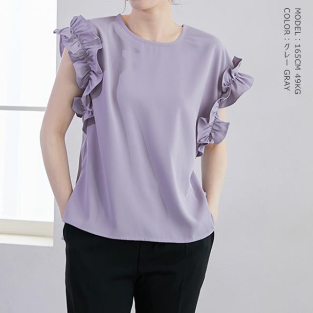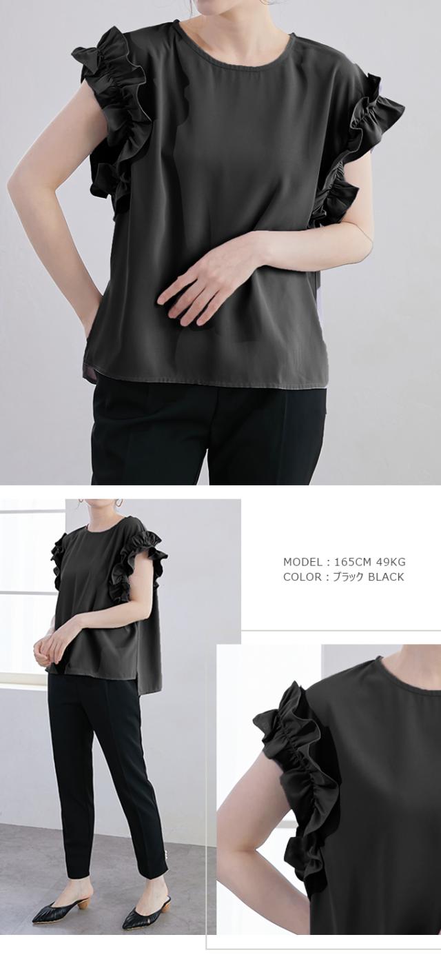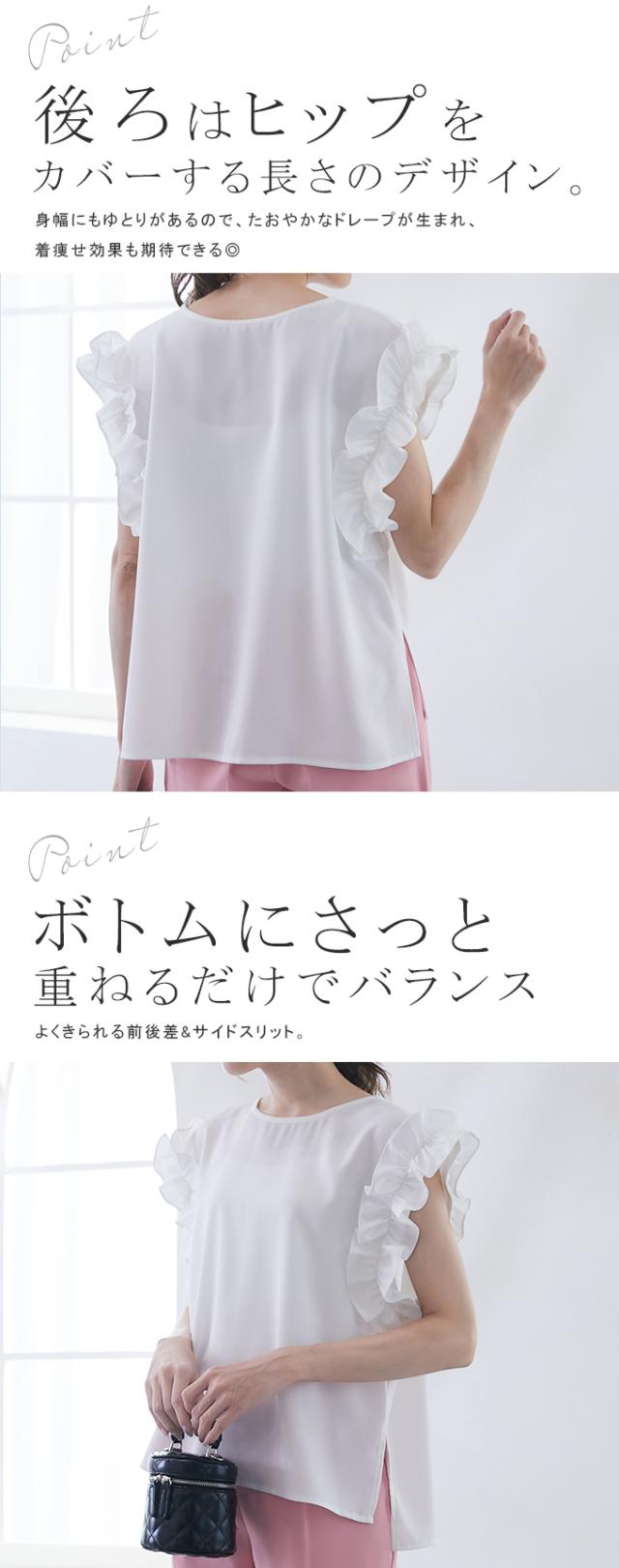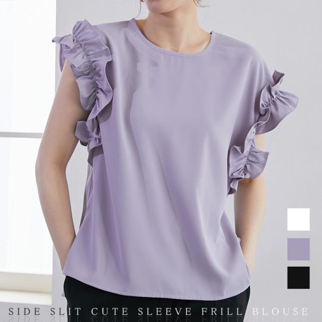 70%OFF、1104円、袖フリル ブラウス オーバーシルエット ゆったり トップス Tシャツ ティアード シャツ 立体感が目立つフリル 夏 夏服 おしゃれ 大人可愛い スリット きれいめ 上品 華やか 高見え エレガント 麻風の表梨地ポンチ素材