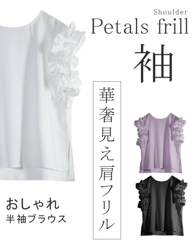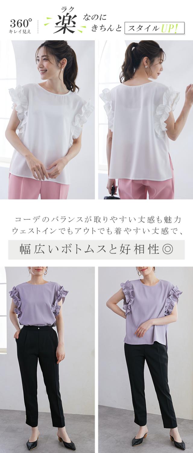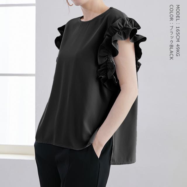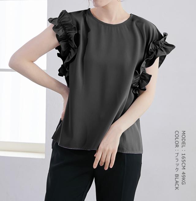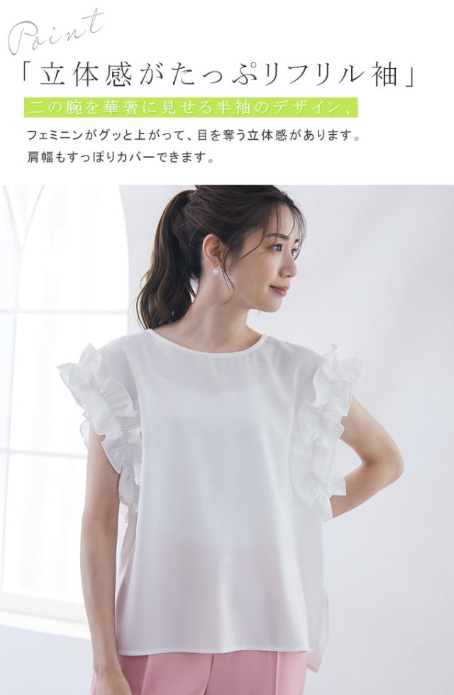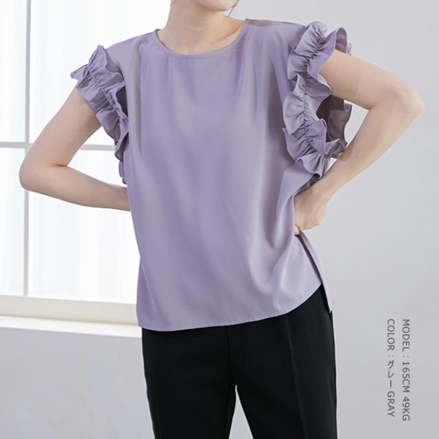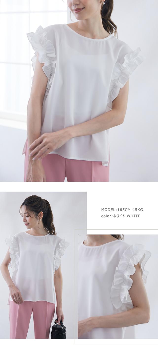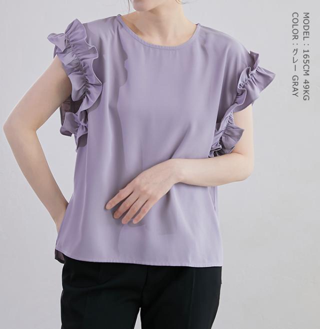 70%OFF、1104円、袖フリル ブラウス オーバーシルエット ゆったり トップス Tシャツ ティアード シャツ 立体感が目立つフリル 夏 夏服 おしゃれ 大人可愛い スリット きれいめ 上品 華やか 高見え エレガント 麻風の表梨地ポンチ素材