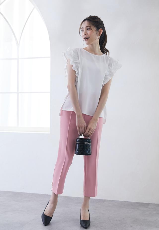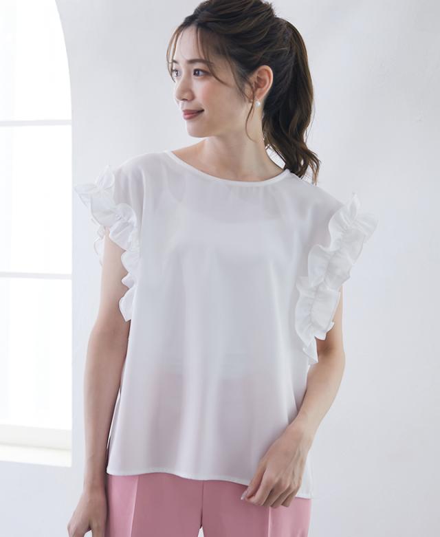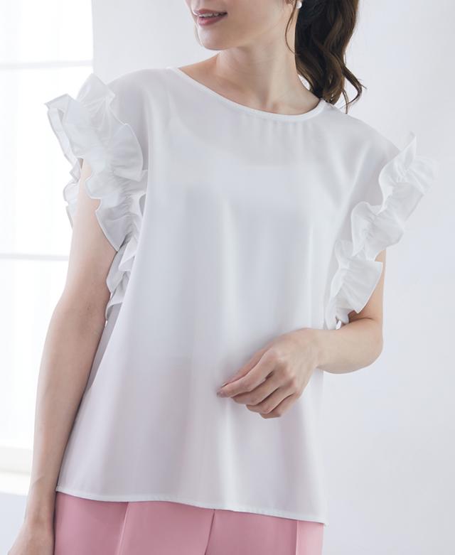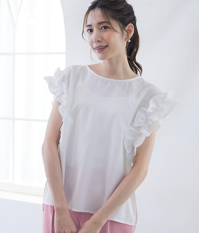 華奢なフリル袖で女性らしい印象漂う