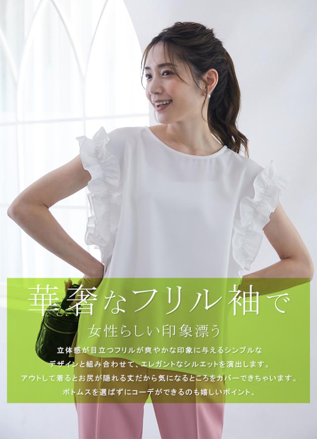 華奢なフリル袖で女性らしい印象漂う 立体感が目立つフリルが爽やかな印象に与えるシンプルな デザインと組み合わせて、エレガントなシルエットを演出します。 アウトして着るとお尻が隠れる丈だから気になるところをカバーできちゃいます。 ボトムスを選ばずにコーデができるのも嬉しいポイント。 ※モニター環境により多少色合いが異なりますので、予めご了承くださいませ |