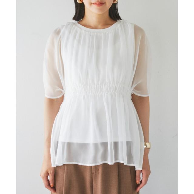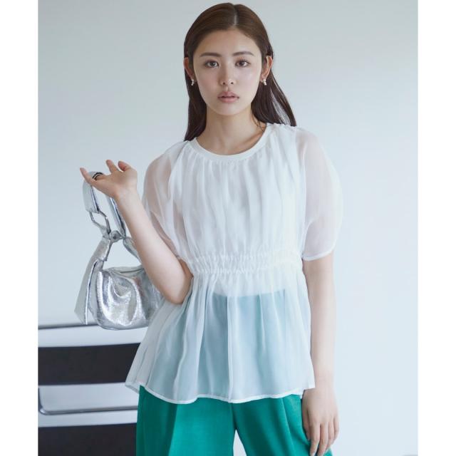 【シアー素材で柔らかな印象の夏のドッキングプルオーバー】