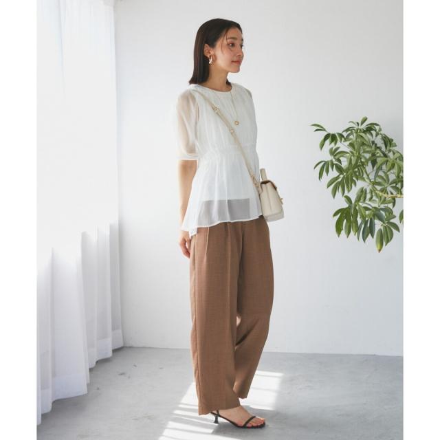 あえてインナーだけパンツにインして着用すると、シアー感を強調したスタイリングになりおすすめです。