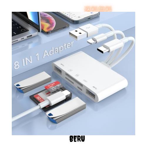◆商品名:SD Card Reader for iPhone, 8-in-1 Memory Card Reader Lighting/USB/USB C to SD/TF Card USB OTG Adapter Lighting to SD Card Adapte