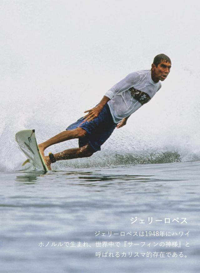 ジェリーロペスは1948年にハワイ、ホノルルで生まれ、世界中で『サーフィンの神様』と呼ばれるカリスマ的存在である。ちなみに彼の母は日系三世。