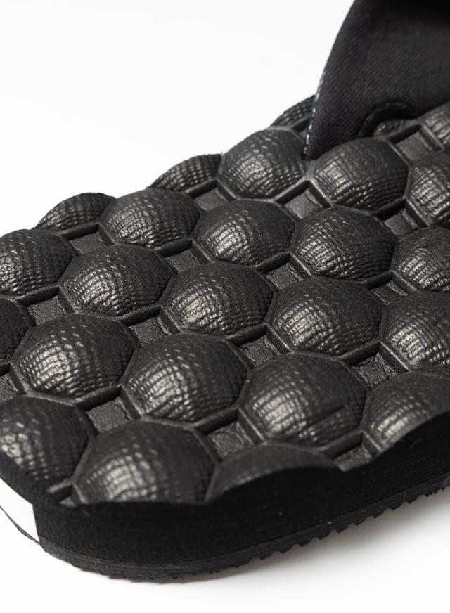 ラバーソールの凹凸もまた、いやらしさを感じない程度にサンダルの存在感を引き立たせている。