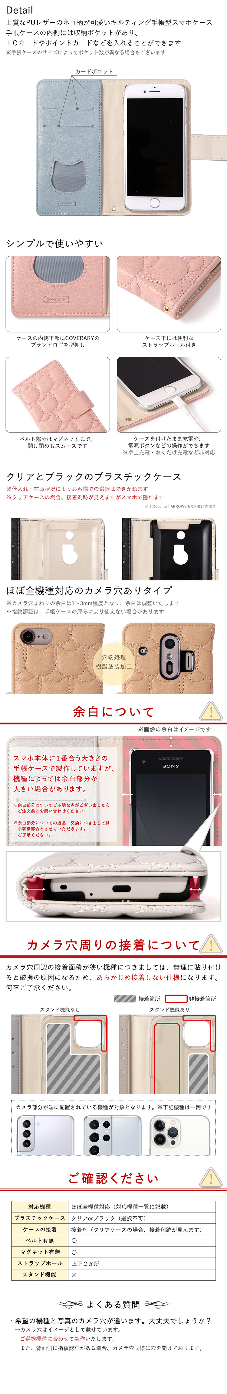 ネコ型キルティングがかわいいスマホケース全6色×ショルダーストラップ