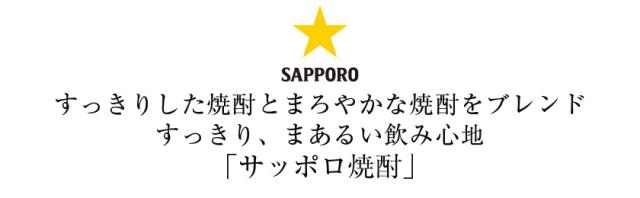サッポロ焼酎は、サッポロ独自の蒸溜技術でスッキリした焼酎とまろやかな焼酎をブレンドし、マイルドな飲み口に仕上げられた焼酎です。