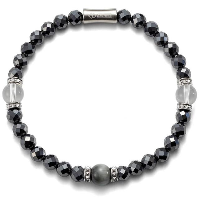 LUCEαのシンプルさに天然石の水晶とイーグルアイを組み合わせた腕用磁気アクセサリー。