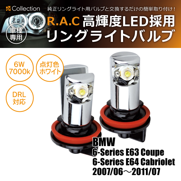 【在庫限】BMW E63/E64 2007/06-2011/07 LED ヘッドライトリングバルブ デイライト対応 6W 7000k(商品コード:500099)