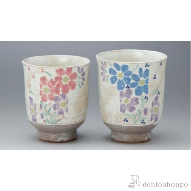 「送料無料」 組湯呑 櫛目草花 ペア ( 名入れ有料 退職祝い 定年 湯呑み 湯のみ セット 湯飲み おすすめ 清水焼 京焼 結婚 出産 内祝い )