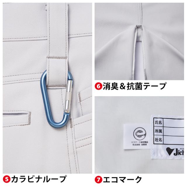 ◇機能:帯電防止素材・ストレッチ・消臭・抗菌・JIS-T8118規格適合帯電防止服・コインポケット・股ガゼット・カラビナループ・マルチポケット