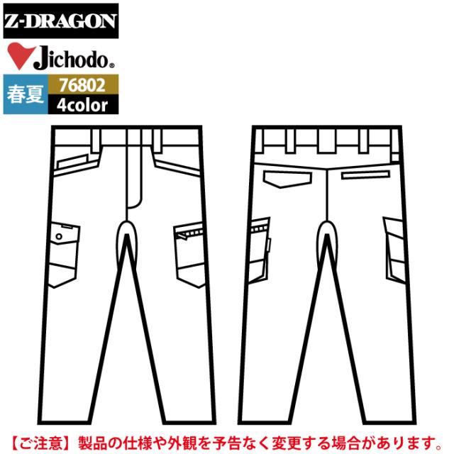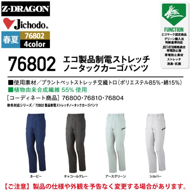 自重堂 作業服 76802 ストレッチノータックカーゴパンツ 112-120 春夏用 作業着