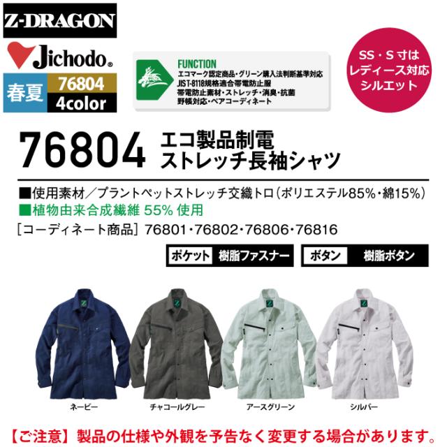 自重堂 作業服 76804 ストレッチ長袖シャツ SS-LL 春夏用 作業着