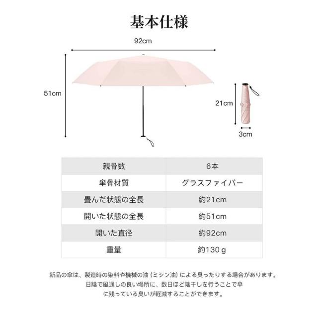 - 持ち歩いても全く重くなく、通勤や通学にぴったりです。UVカットSPF50+で紫外線対策も万全、晴雨兼用なのも嬉しいポイントです
