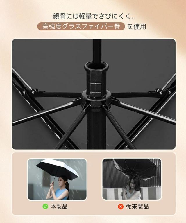 - わずか130gの軽さに驚きました!バッグに入れても全く重さを感じず、毎日持ち歩けます。UVカット効果も高くて安心です。