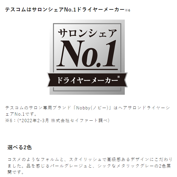テスコムのサロン専用ブランド「Nobby(ノビー)」はヘアサロンドライヤーシェアNo.1です。