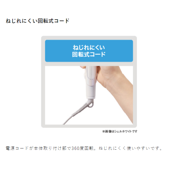 電源コードが本体取り付け部で360度回転。ねじれにくく使いやすいです。
