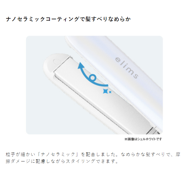 粒子が細かい「ナノセラミック」を配合しました。なめらかな髪すべりで、摩擦ダメージに配慮しながらスタイリングできます。