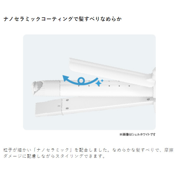 粒子が細かい「ナノセラミック」を配合しました。なめらかな髪すべりで、摩擦ダメージに配慮しながらスタイリングできます。