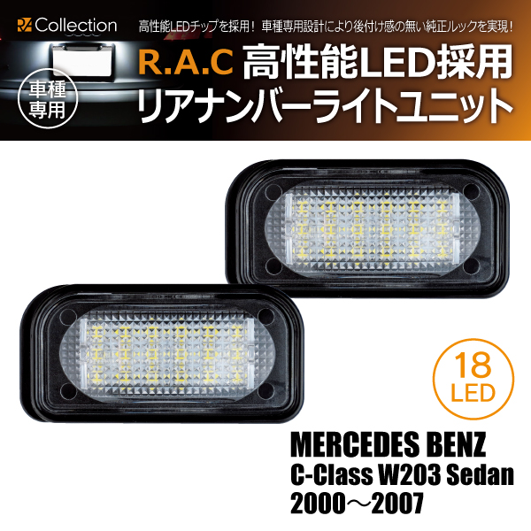 【在庫限】メルセデスベンツ C-クラス W203 セダン 2000-2007 R.A.C LEDナンバー灯ユニット(商品コード:200012)