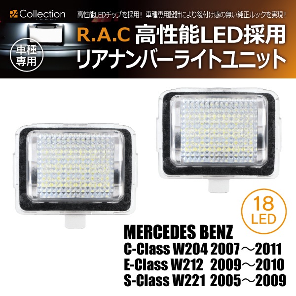 【在庫限】メルセデスベンツ S-クラス W221 2005-2009 純正バルブ車用 R.A.C LEDナンバー灯ユニット(商品コード:200014)
