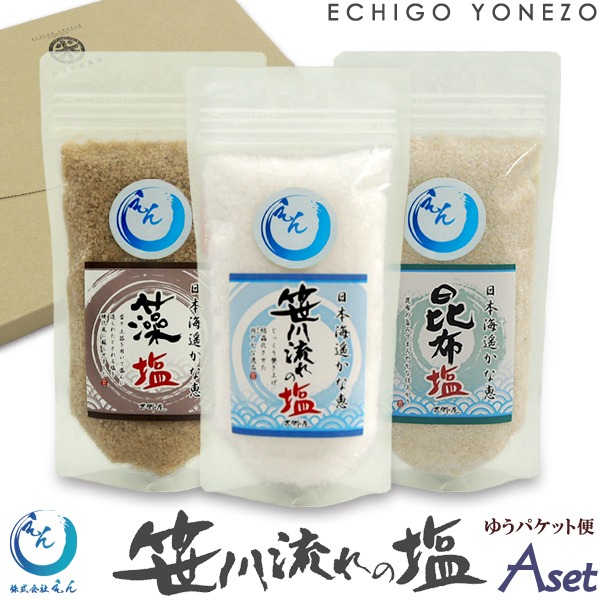 塩 えん 笹川流れの塩 Aセット 540 g (180g×3) チャック付きスタンド袋 天然の粗塩 粗塩 藻塩 昆布塩 二代目よしおの塩 送料無料