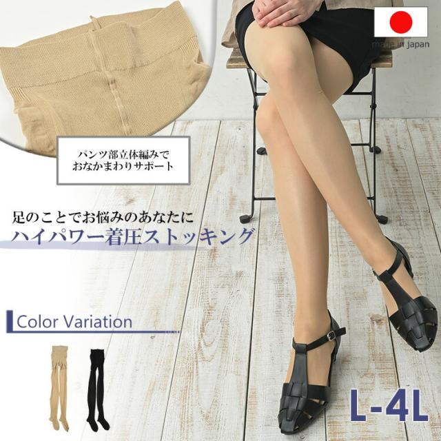 大きいサイズ レディース ハイパワー着圧ストッキング 保湿加工 メール便対応 段階着圧設計 レッグウェア インナー L-LL/LL-3L/3L-4L ゆったりサイズ ぽっちゃり女子 プラスサイズ