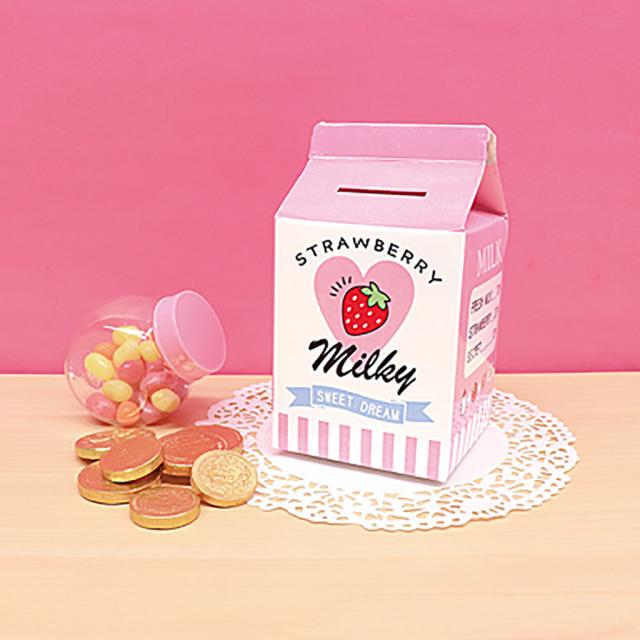 ピンク/組み立て式いちごミルク型貯金箱 / サン宝石