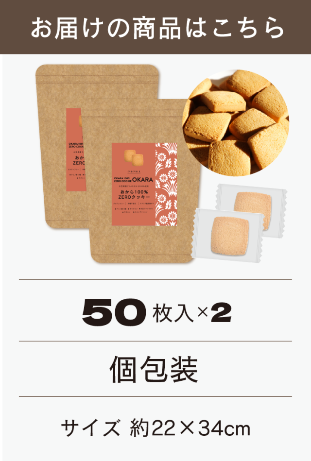 福袋【まとめ買いで超お得】おから100%ZEROクッキー個包装 100枚 グルテンフリー 小麦粉不使用 卵不使用 糖質制限 ダイエット食品 ダイエットフード 腸活 食物繊維 おから おからパウダー 福袋