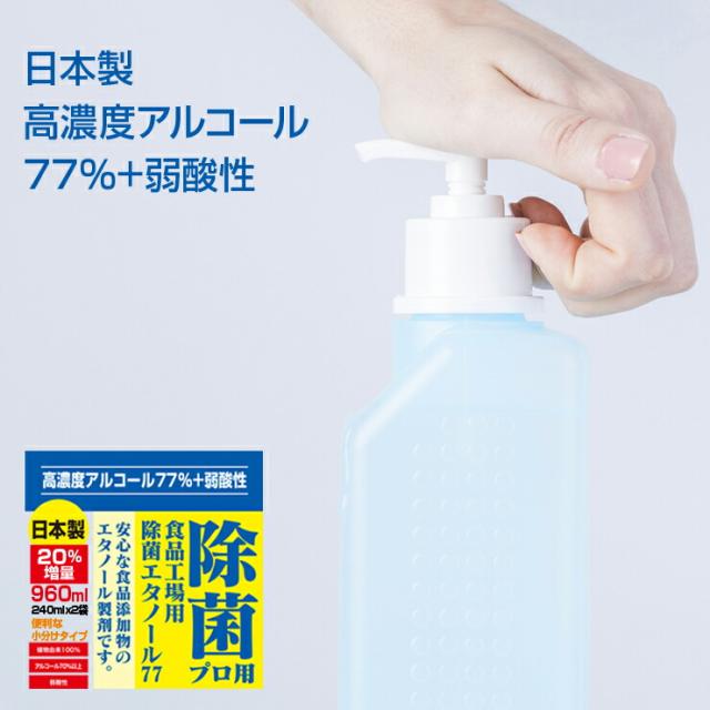 【即納】高濃度77% 480ml(240mlx2) アルコール エタノール 業務用 詰め替え 消毒用エタノール アルコール消毒液 アルコール消毒 プロ用エタノール77 弱酸性タイプ 手指消毒 日本製【5営業日以内出荷 土日祝除く】