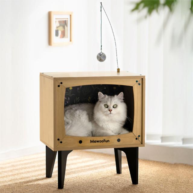 レトロでおしゃれなブラウン管型テレビを模した猫専用のハウスです。凝った作りで一見ペット用家具とは分からないデザインで、愛猫のかわいい姿を楽しめます。お部屋のインテリアの一部にもなるデザイン性の高いキャットハウスです。