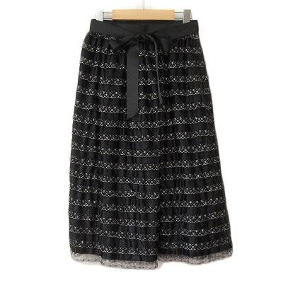 【中古】未使用品 gio ジオ ワールド ヴィンテージ レトロ スカート ティアード フリル レース ラメ 9 黒 ブラック