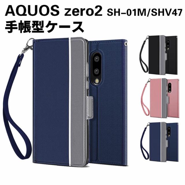 AQUOS zero2 SH-01M/ SHV47 スマホケース 手帳型ケース スマートフォンケース ストラップ付き カバー ツートンカラー マグネット 定期入れ ポケット シンプル スマホケース