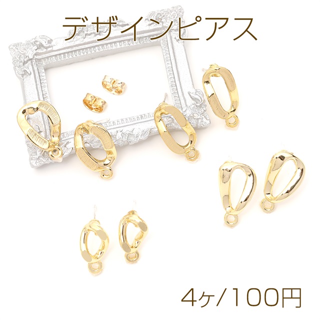 デザインピアス 幾何学 合金 シルバーポスト ゴールド キャッチ付き ピアスパーツ (4ヶ)