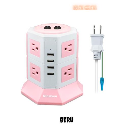 Micshion 電源タップタワー型 コンセント 2つのバイポーラスイッチ AC 8個口 USB 4ポート(4.5A/5V)1500w 入力100v-125v 急速充電可