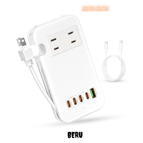 素直な虹 電源タップ USB-C コンセント PD 65W Type-C 【4つUSB-C ポート・USB-A ポート・2つACコンセント・PSE認証済・ケーブル収納式